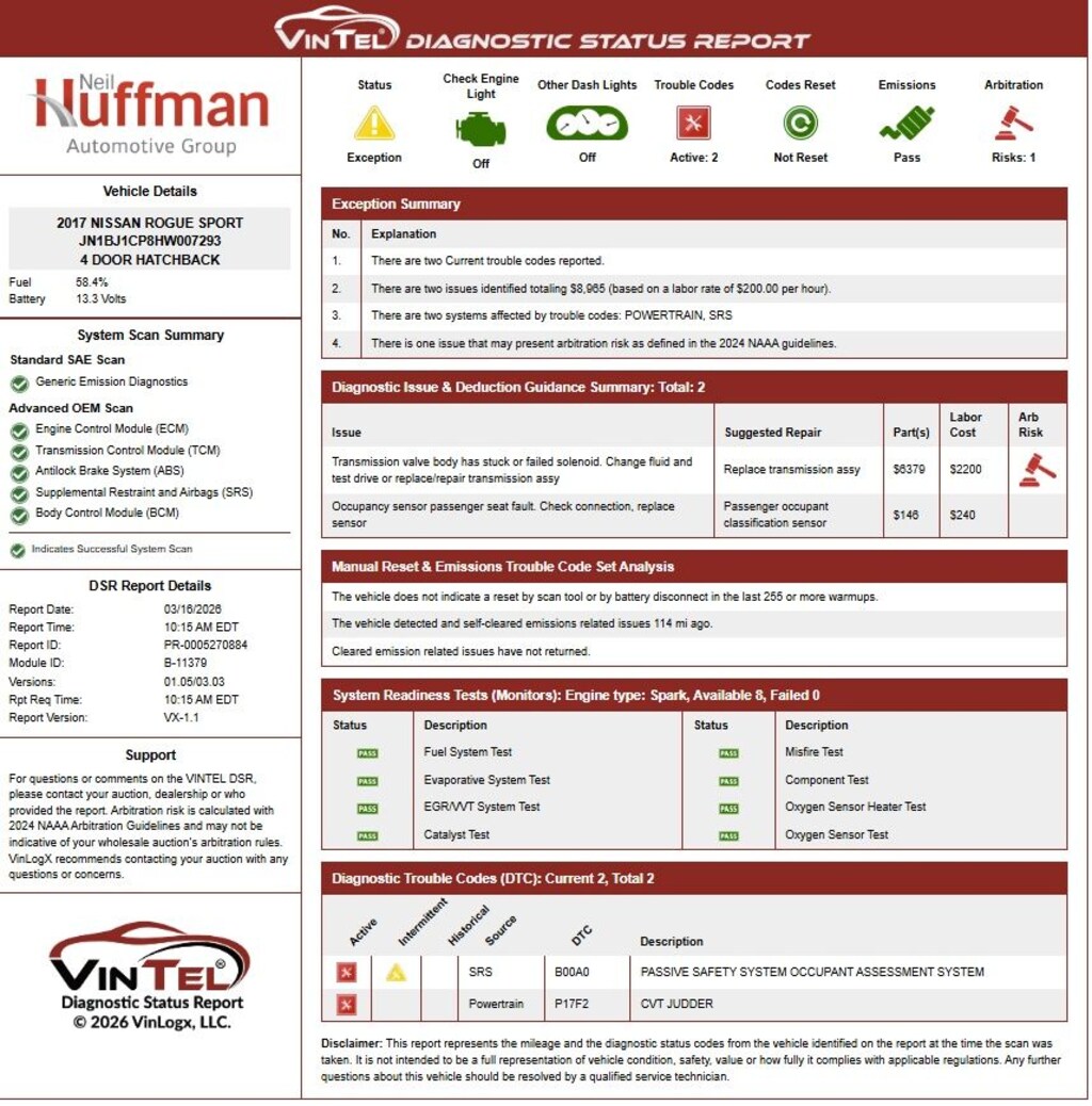 BEWARE! PLEASE READ... This vehicle is sold 100% AS IS, with no implied or expressed warranties or guarantees. This vehicle is likely to have multiple mechanical and/or auto body defects. We encourage you to have this vehicle inspected by a qualified technician at your expense. This car is part of our âNeilâs Value Dealâ program offering the consumer the ability to buy this vehicle before we send it to auction. We performed a âsafety inspectionâ only (NOT A âMECHANICAL INSPECTIONâ). THIS VEHICLE DOES NOT QUALIFY FOR THE âHUFFMAN PLATINUM PLANâ 90 DAY LIMITED WARRANTY OR THE âHUFFMAN 7 DAY LIKE IT or EXCHANGE IT PROMISEâ. 3 YEARS COMPLIMENTARY MAINTENANCE INCLUDED with purchase! Huffman Has It!